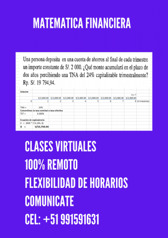 Se dicta clases remotas de los cursos de matematica financiera e ingeniería economica.