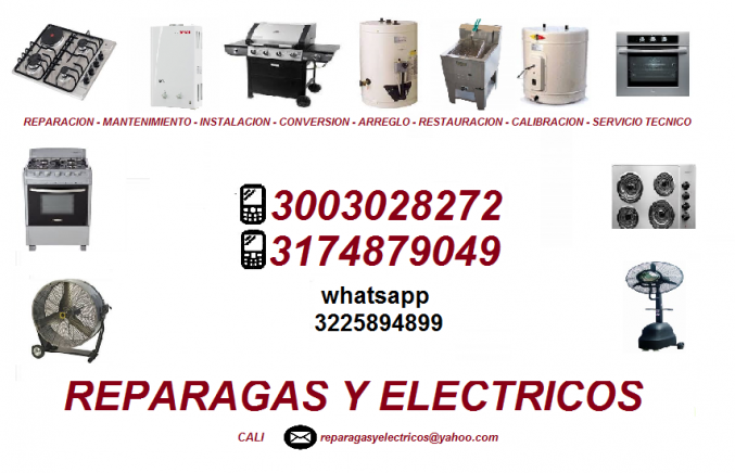 CALI REPARACION DE ESTUFAS A GAS, HORNOS, CALENTADORES,MANTENIMIENTO E INSTALACION, CONVERSION, SERVICIO TECNICO, DOMICILIO, CEL 3003028272