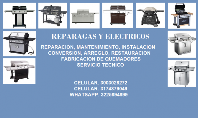 REPARACION DE ASADORES A GAS, MANTENIMIENTO DE ASADORES, INSTALACION DE ASADORES, CONVERSION DE ASADORES, ARREGLO DE CALENTADORES, SERVICIO TECNICO, RESTAURACION, SERVICIO DE ARMADO, CEL 3003028272 CEL 3225894899