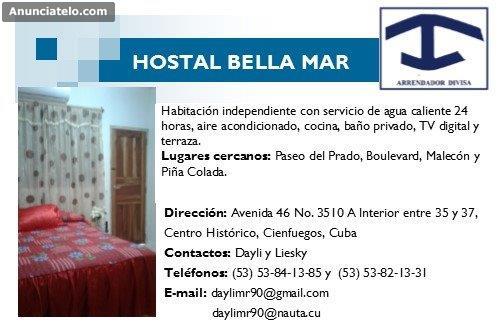 Se renta habitación céntrica ubicada en la ciudad de Cienfuegos cercana al prado, malecón, boulevard y piña colada. Servicio de agua caliente 24 horas, aire acondicionado,baño privado, TV digital y terraza.