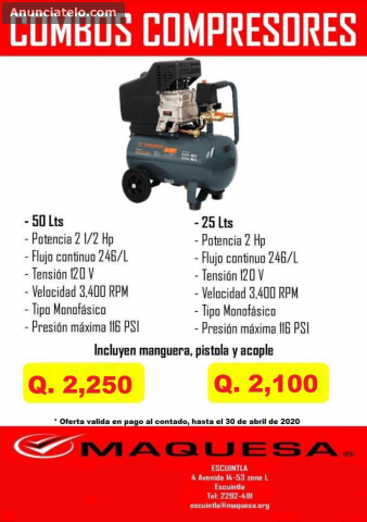 Combo de compresores visitanos en 4 avenida 14-53 zona 1 escuintla o llamanos al 22924111 o al 42248067 sera un gusto poderte servir.
