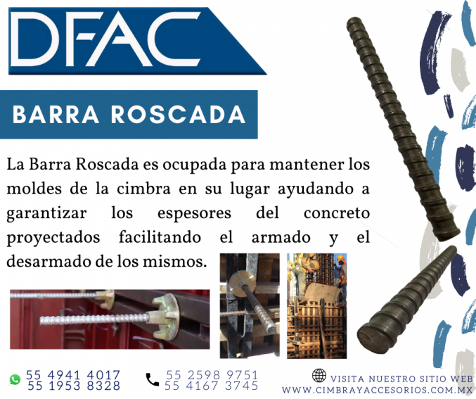 Está fabricada por rolado en frio (Cold-rolled) con hilo de alta resistencia. Es ocupada para mantener los moldes de la cimbra en su lugar ayudando a garantizar los espesores del concreto proyectados facilitando el armado y el desarmado de los mismos. En DFAC también contamos con andamios, plataformas llantas para andamio, maquinaria ligera, revolvedoras, vibrador para concreto, cortadoras y más. ¡Entrega inmediata! ¡Entrega en toda la república!, además, contamos con reparación y mantenimiento en CDMX y Área Metropolitana. Tenemos stock, la mejor calidad al mejor precio. Búscanos como DFAC. Somos tu mejor opción, te ofrecemos calidad y seguridad en cada uno de nuestros productos. Estoy a tus ordenes Claudia López.