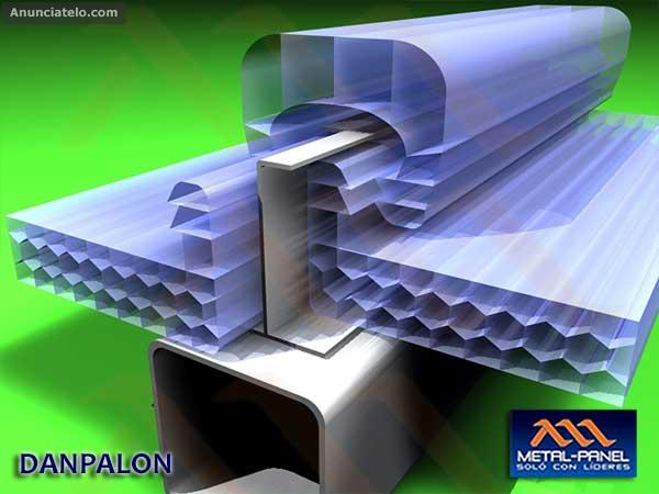 Sistema Danpalon consta de láminas de policarbonato y de una serie de accesorios que complementan la instalación, fijándolo sin perforar la lámina, permitiendo su libre expansión térmica y engargolando los paneles mecánicamente, minimizando el uso de silicones, garantizando 0 filtraciones.