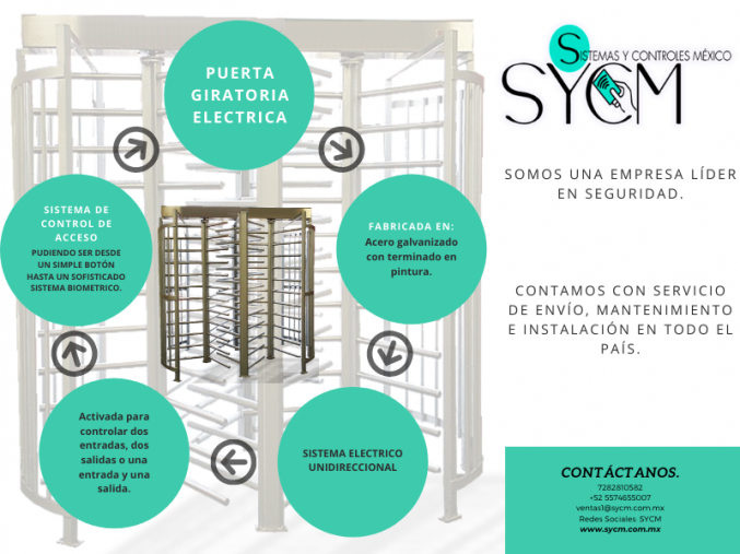 Las puertas giratorias controlan o restringen el acceso a un lugar o área determinada y pueden ser controladas por un simple botón o por cualquier sistema diseñado para control de acceso, o acceso libre.