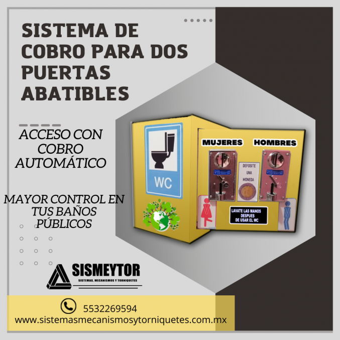 Tenemos para ti los mejores sistemas para cobro con devolución de cambio, en baños públicos para dos puertas abatibles, con los mejores precios del mercado