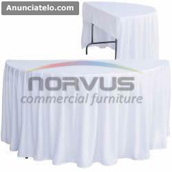 Viste tus mesas plegables auxiliar tipo media luna, con los manteles blancos con faldon plisado, Ideal para eventos como bodas, graduaciones, quince años y mucho mas.