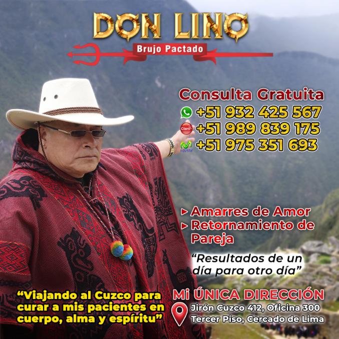 Yo, DON LINO soy el único brujo peruano que en el Perú y el Mundo entero tiene pacto con el Diablo, es por esta razón que realizo los mundialmente conocidos AMARRES PACTADOS, no hay otro ser en el planeta que efectué estos trabajos.