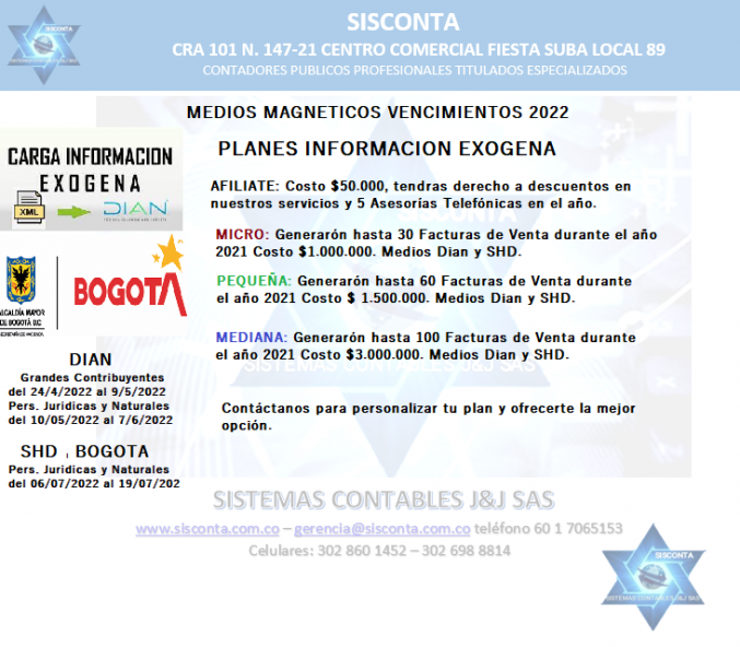 Ofrecemos la oportunidad de integrar los productos contables con el requisito legal de la facturación electrónica, planes de acuerdo a su necesidad y presupuesto, declaraciones de renta , Creación de empresas, Medios magnéticos, etc.