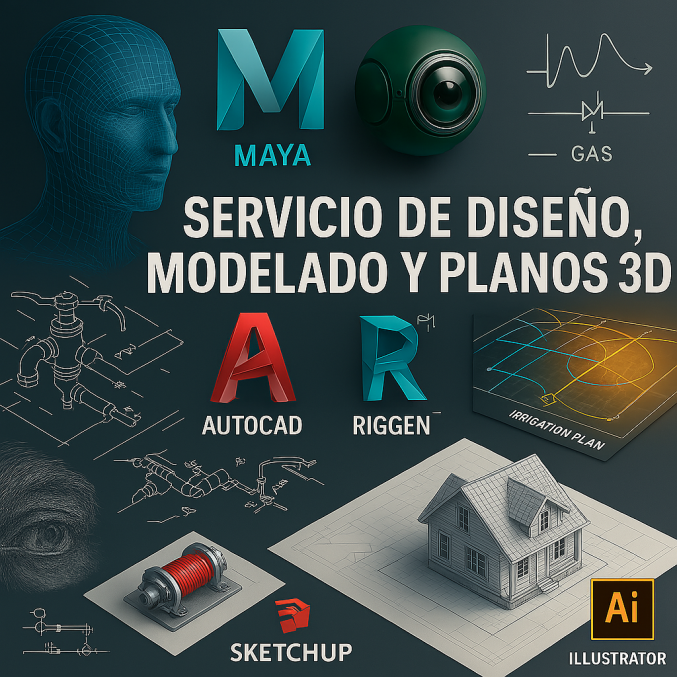 - Elaboración: Creación de planos arquitectónicos, de riego tecnificado, gas, electromecánicos, señalización, ingeniería, sanitarios, eléctricos, cortes y más.