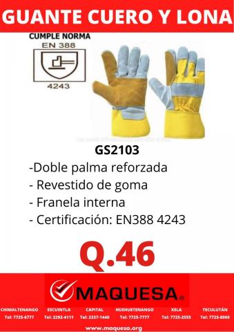 EN MAQUESA TENEMOS EN PLAZA UNA AMPLIA VARIEDAD DE GUANTES CERTIFICADOS A PRECIOS BAJOS. CONTÁCTANOS VENDEDOR: ANDONI MARTÍNEZ WHATSAPP: https://wa.me/50245005100 PBX: 7725-7777 huehuetenango@maquesa.org *ESTAMOS PARA SERVIRTE*