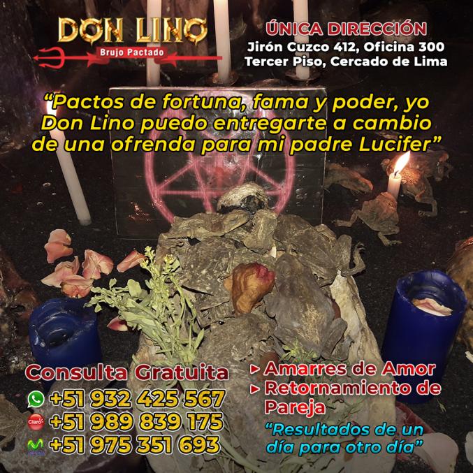 DON LINO el único y el mejor Brujo Peruano Pactado con el diablo, descendiente de las Huaringas de Huancabamba - Piura - Perú, con un solo ritual de brujería pactada te junta al ser amado para toda la vida, no confundirlo con falsos brujos pactados, que vienen clonando su página WEB, Facebook, correo, vídeos, fotos, personas inescrupulosas que no cuentan con Oficina conocida, dirección, teléfono fijo, solo tienen página web.