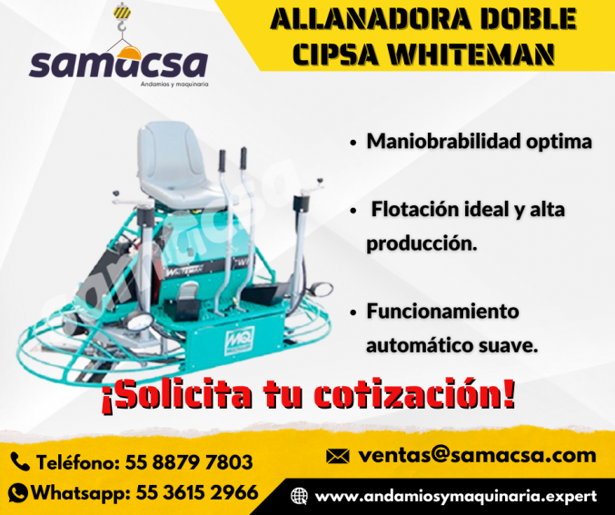Las allanadoras dobles de operador a bordo son ideales para acabado de pisos en donde se requiere de un alto nivel de planicidad - especificaciones F -. Las allanadoras dobles Whiteman se recomiendan para trabajos de construcción de áreas medianas a grandes, como plantas industriales, centros comerciales, etc.