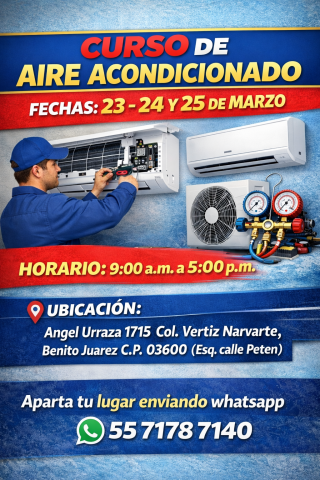 AIRE ACONDICIONADO: 13 al 16 de Abril / 9:00 a.m. a 2:00 p.m.