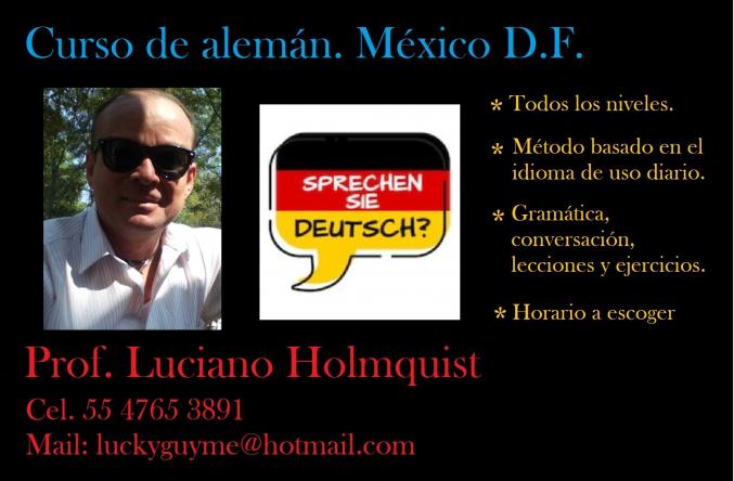 Método dinámico y divertido para aprender rápidamente el alemán de uso diario. Incluye gramática, conversación, lecciones y ejercicios. Todos los niveles. Horario a escoger. Clase de demostración sin costo. Prof. Luciano Holmquist.