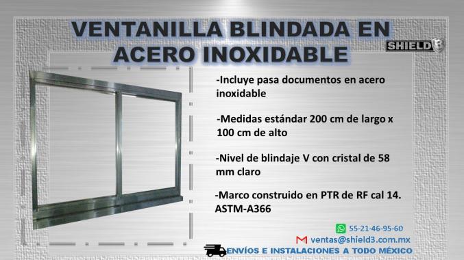 Las ventanillas blindadas pueden ser fabricadas en medidas estándar o personalizadas, en acero inoxidable o acero al carbón, así como el nivel de blindaje requerido III, IV, V, VII, y VIII.