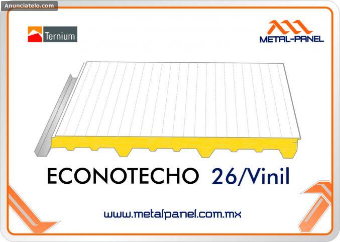 Ternium Econotecho es la opción de panel aislante económico fabricado con la cara exterior de lámina galvanizada y pintada y la cara interior en Vinil blanco reforzado.