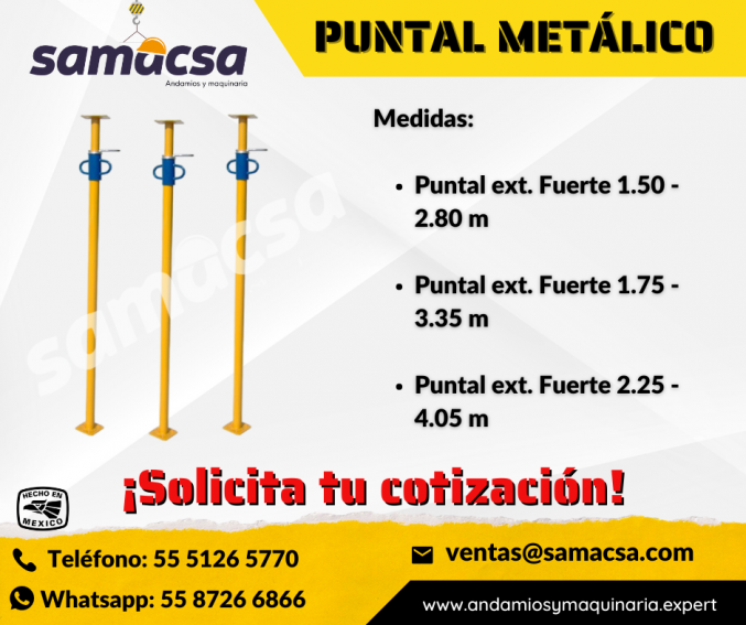 Puntal de alta resistencia y alta calidad que certifica y garantiza su funcionalidad y capacidad de carga