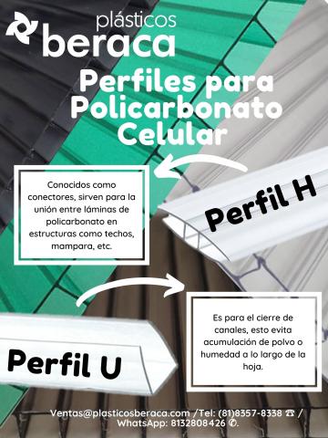 También te ofrecemos Perfil H (sirve para la unión entre láminas) y Perfil U (sirve para el cierre de canales de las laminas) en espesor de 6mm y 8mm de 5.80mts.