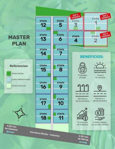 Una nueva colonia en desarrollo, donde hay terrenos con uso habitacional y otros con uso comercial o mixto, todas las colonias del país así se crearon, con la ventaja de que el acceso principal está a borde de carretera Mérida-Celestún, también los postes de luz están a un costado del acceso principal.