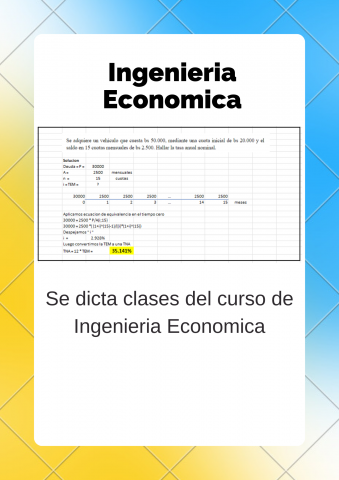 Se dicta clases remotas del curso de ingeniería económica. Este curso esta dirigido a alumnos de pregrado y posgrado.