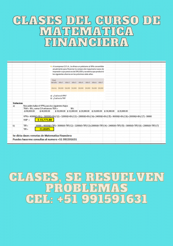 Se dicta clases remotas del curso de Matemática Financiera, resuelvo problemas tipo examen. Puedes hacerme consultas al número +51 991591631