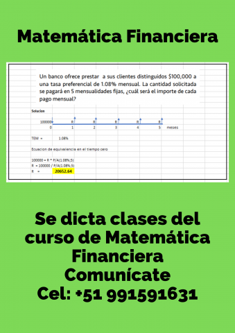 Se dicta clases del curso de Ingeniería Economica, asesoría permanente para que puedas pasar el curso en el primer intento. Comunícate al numero de celular +51 991591631