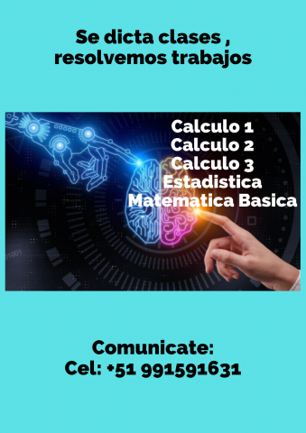 Asesoría especializada en matemáticas, para alumnos de pregrado y posgrado. Clases presenciales y virtuales. Te apoyo a que pases tus cursos de matemática en el primer intento.