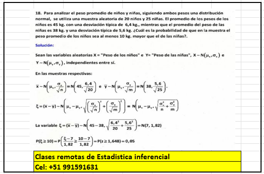 Se dicta clases remotas del curso de Estadística Inferencial, resuelvo problemas tipo examen, te apoyo para que puedas pasar el curso en el primer intento. Puedes hacerme consultas al numero +51 991591631