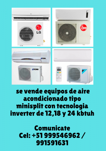 Se vende equipos de aire acondicionado mini split de 12k, 18k y 24 kbtuh. Las marcas que se comercializan son YORK, CARRIER, LG y SAMSUNG Te apoyamos en tus proyectos de climatizacion y ventilacion